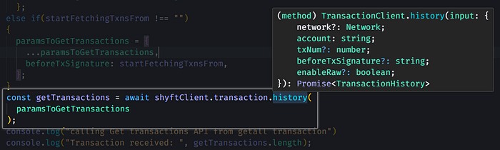 const getTransactions = await shyftClient.transaction.history(